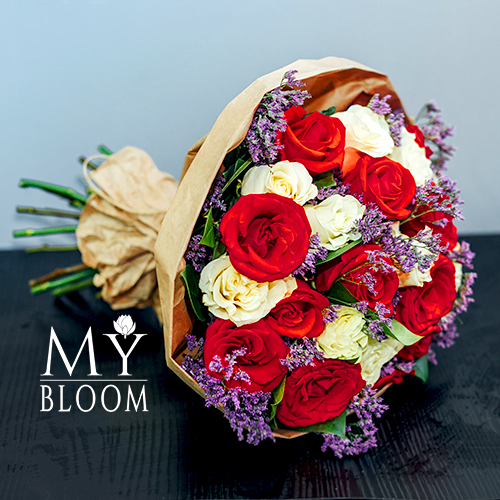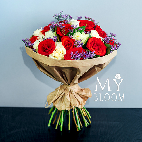 Букет 25 красных и белых роз (40 см)