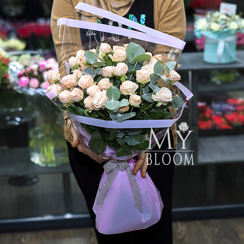 Букет из 15 кремовых кустовых роз (50 см)