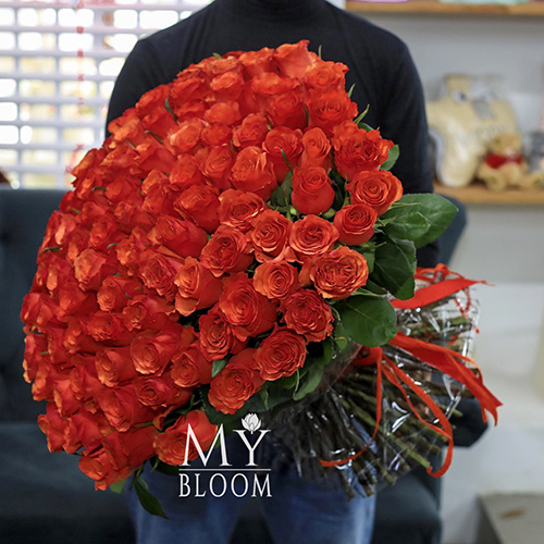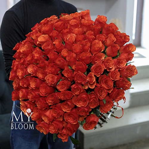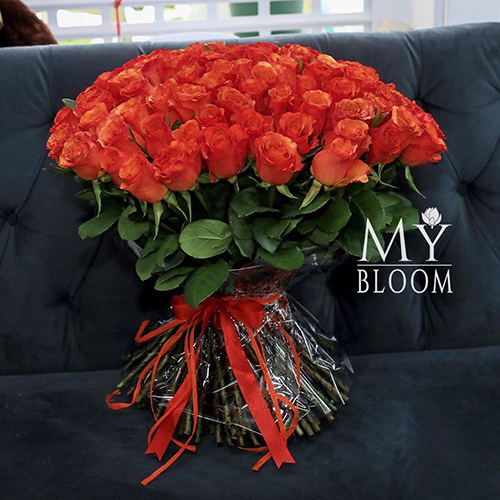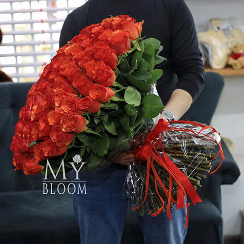 Букет 101 коралловая роза (60 см)