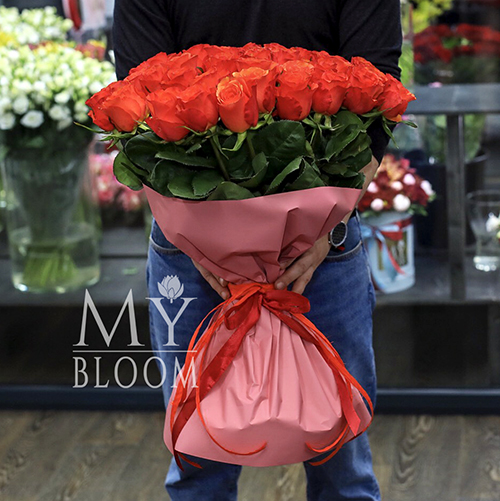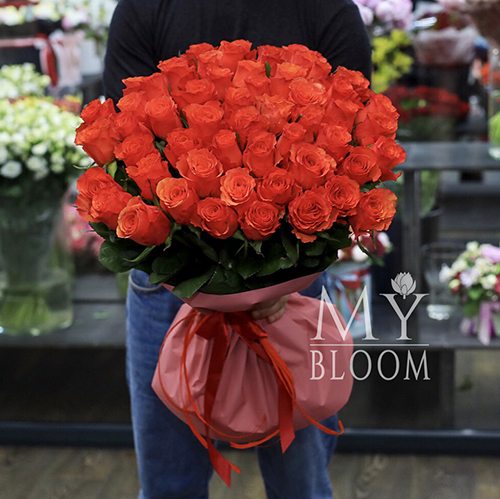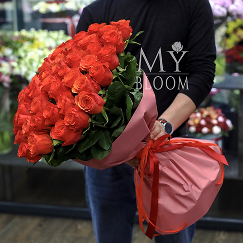 Букет 51 коралловая роза (60 см)