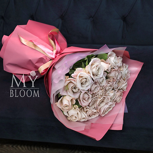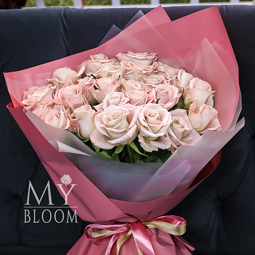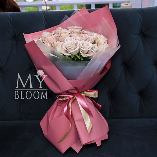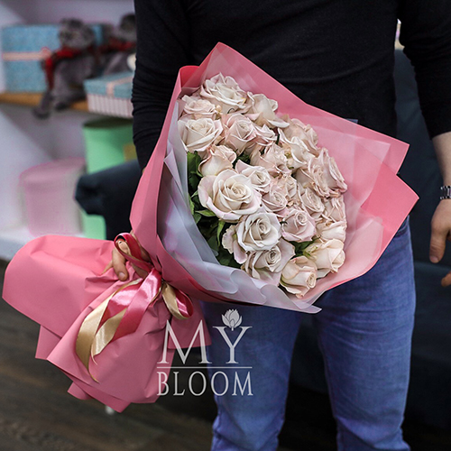 Букет из 25 роз цвета капучино, сорт мента (40 см)