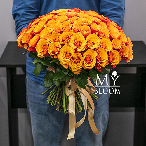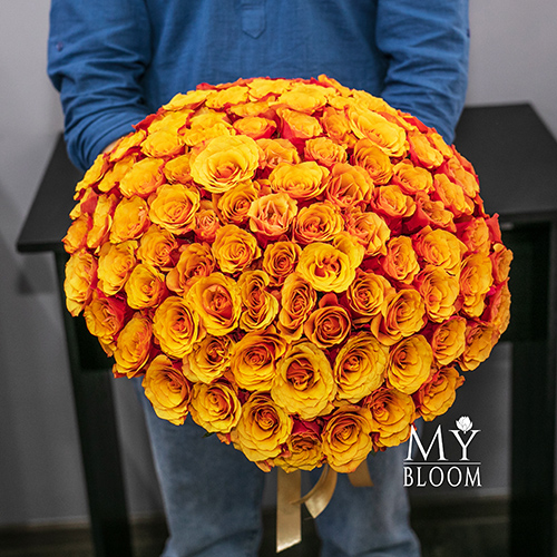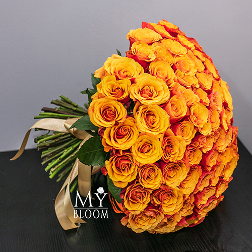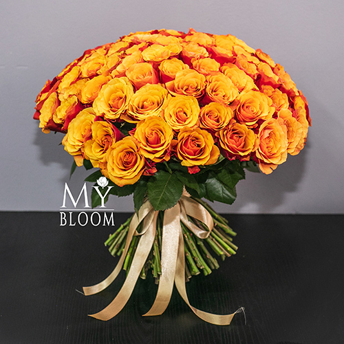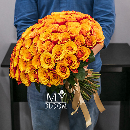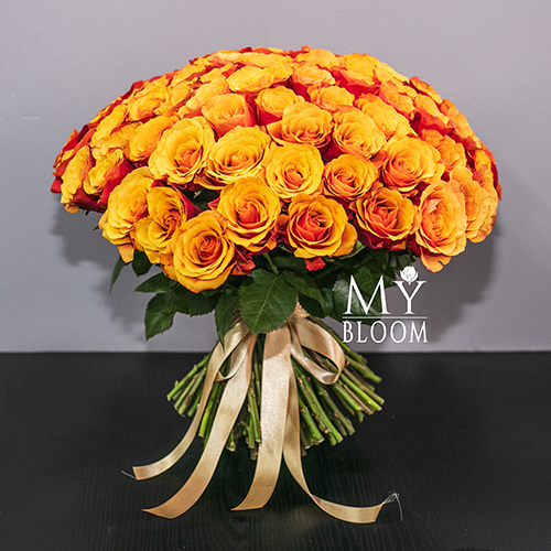 Букет 101 розово-желтая роза Эспана (30 см)