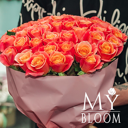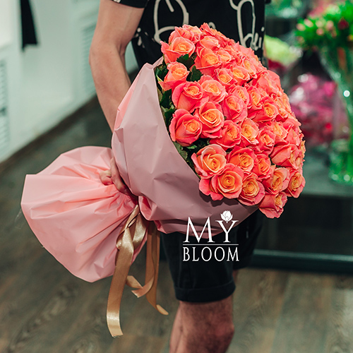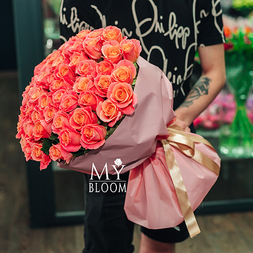 Букет из 51 персиковой розы Мисс Пиги (50 см)