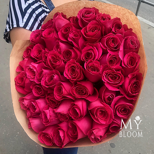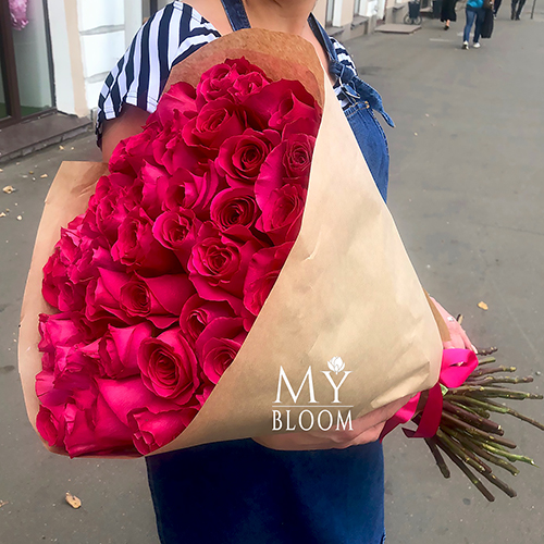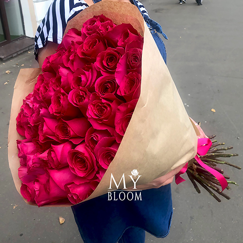 Букет 51 малиновая роза Эквадор Пинк Флойд (60 см)