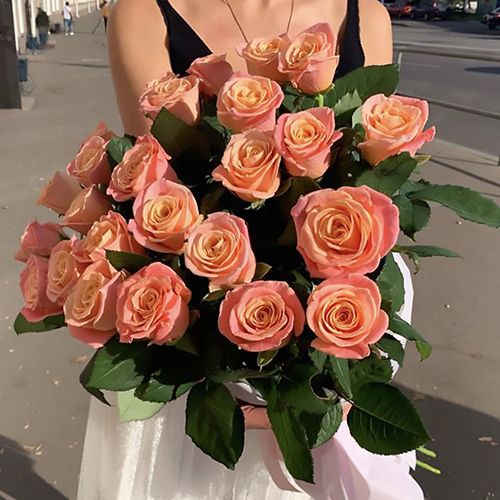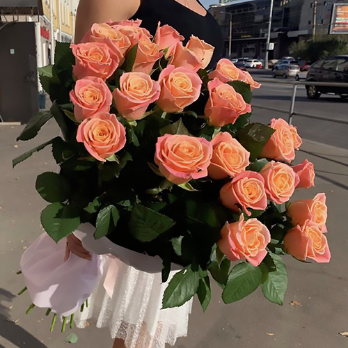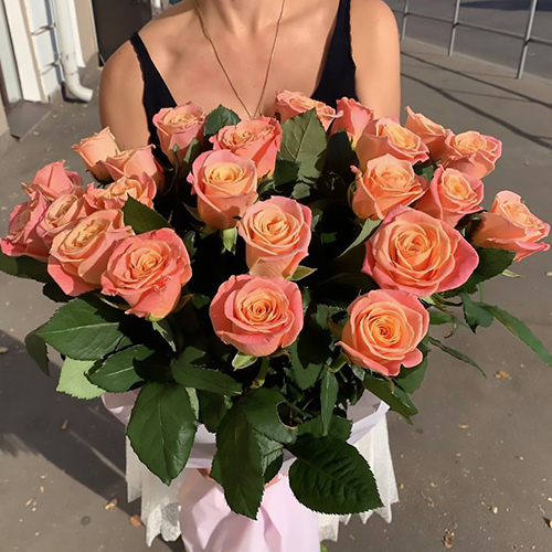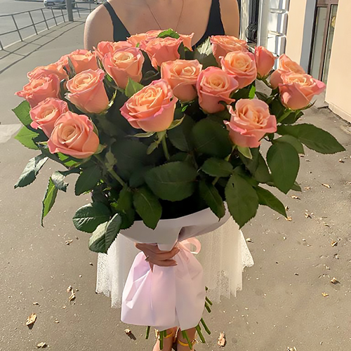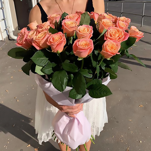 Букет 25 коралловых роз (70 см)