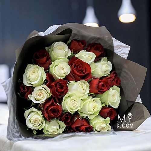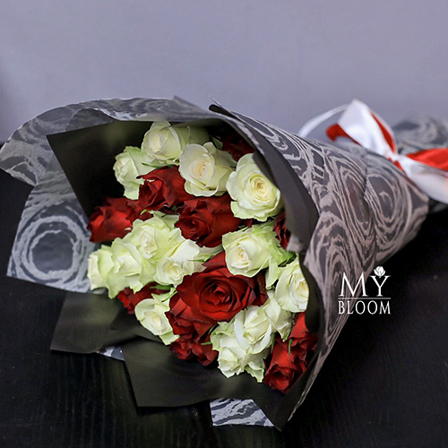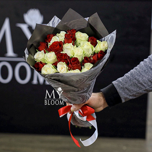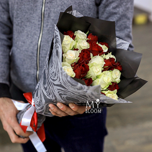 Букет из 25 красных и белых роз (40 см)