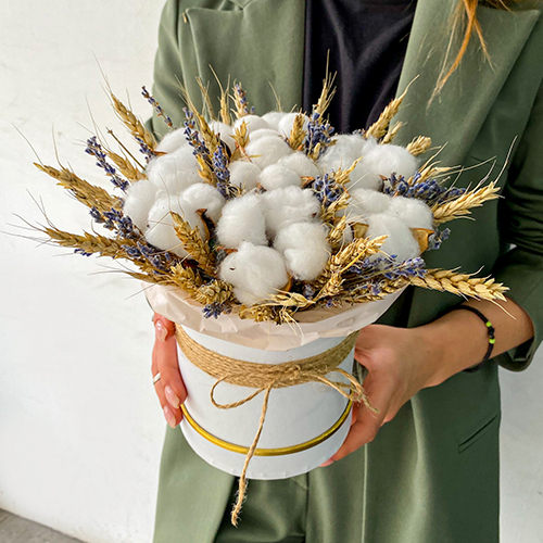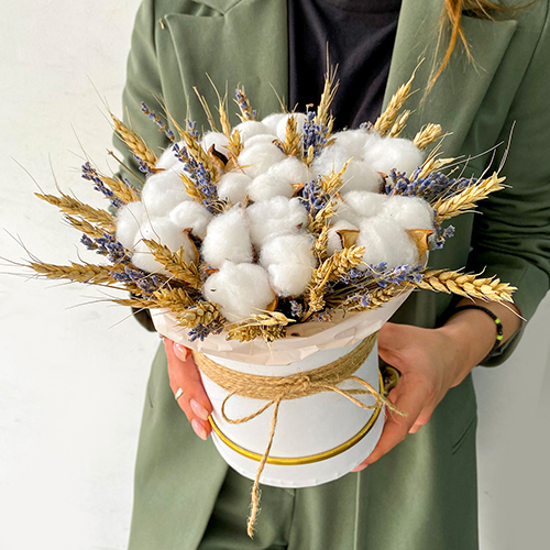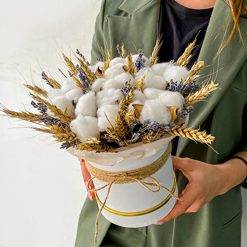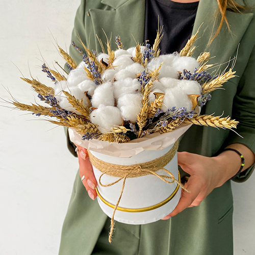 Полевой букетик в шляпной коробке (Сухоцвет)
