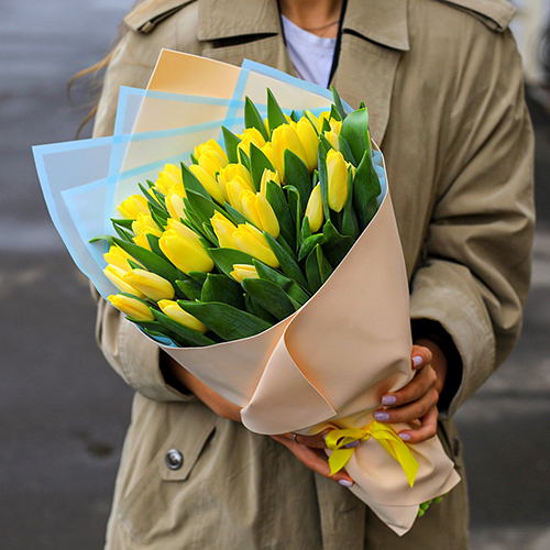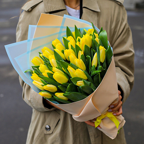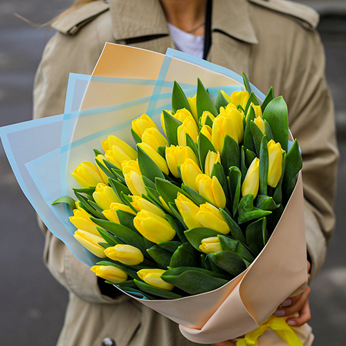 Букет 49 лимонных тюльпанов