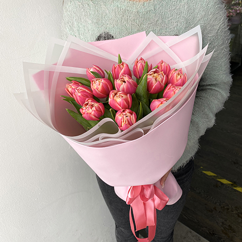 Букет из 15 пионовидных тюльпанов
