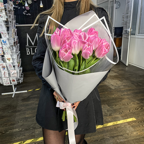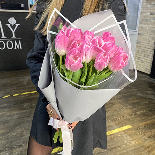 Букет 15 розовых тюльпанов