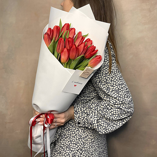 Букет 15 красных тюльпанов (50 см)