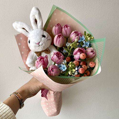 Заказанный букет вы можете забрать у нас в магазине по адресу: Москва: ул. Большая Семеновская 11с3 - круглосуточно!