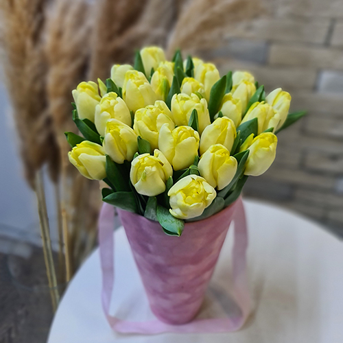 25 жёлтых тюльпанов в конусе